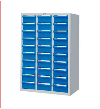 抽屜鋁合金把手內部設有安全扣裝置,未經人為操作,抽屜不會滑出掉落;全寬鋁合金把手設計,附有標示紙及PVC透明膠片;旋開式連桿鎖裝置,一經上鎖,抽屜即全部鎖住;應用抽屜分隔片,可以隨意調整抽屜內空間。